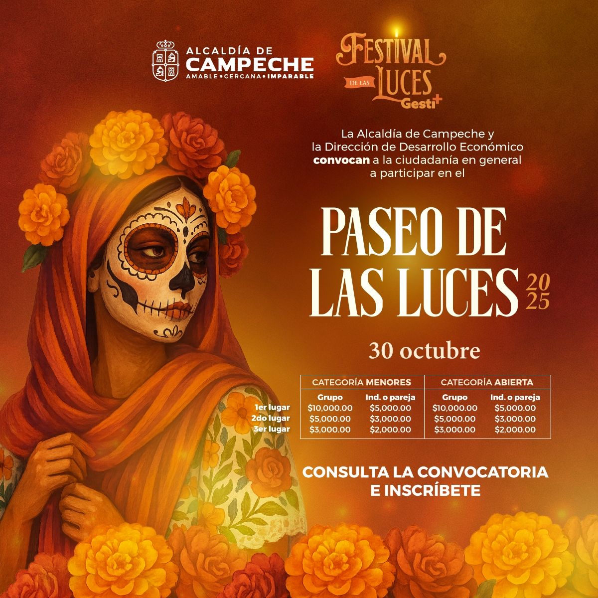 Por cuarto año consecutivo, la Alcaldía de Campeche realiza el Concurso de caracterizaciones mexicano-regional alusivas al Día de Muertos 💀